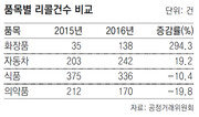 지난해 국내 화장품 리콜 건수가 2015년에 비해 4배 가까이로 늘었다. 자동차 역시 리콜 건수가 1년 만에 두 자릿수 증가율을 나타냈다. 공정거래위원회는 ‘2016년 리콜 실적’ 결과를 공개하면서 지난해 국내 전체 리콜 건수가 1603건으로 전년 대비 1.07% 늘었다고 3일 밝혔다. 리콜은 행정 당국이 결함이 있는 제품의 수리나 교환을 권고하거나 명령하는 것이다. 이번 공정위 집계는 중앙 부처 및 각 지자체가 실시한 리콜 건수를 모두 합한 것이다. 지난해 리콜 증가는 화장품에서 두드러졌다. 2015년 35건에 불과했던 화장품 리콜 건수가 지난해 138건으로 늘어나면서 1년 만에 294.3%가 늘었다. 리콜된 화장품 138건 가운데 업체가 자진 리콜한 것은 35건에 그쳤고, 행정 당국이 명령한 건수가 90건에 달했다. 공정위 측은 “화장품 보존제 성분 기준을 위반한 제품이 많아 지난해 식품의약품안전처와 한국소비자원이 내린 화장품 리콜 건수가 크게 늘어났다”고 설명했다. 자동차 리콜 건수도 지난해 242건으로 2015년(203건)보다 19.2%가 증가했다. 국토교통부는 지난해 8월 독일 아우디 ‘A8 4.2 FSI 콰트로’ 승용차에 대해 주행 중 시동 꺼짐 현상으로 세계 최초로 리콜했다. 올해 5월에는 현대·기아자동차 12개 차종 24만 대에 대해 첫 강제 리콜을 내리는 등 최근 자동차 안전 리콜을 강화하고 있다. 이 밖에 식품(375→336건), 의약품(212→170건), 공산품(654→622건) 등 품목은 리콜 건수가 줄었다. 정부는 내년까지 각 부처와 지자체의 모든 리콜 정보를 행복드림 소비자종합지원 시스템()에 통합해 공개할 방침이다. 세종=박재명 기자 jmpark@donga.com}