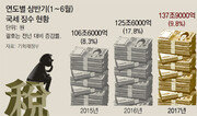 《 나라 곳간은 풍족해지고 있지만 지방 주민들의 씀씀이는 나아지지 못하고 있다. 올 상반기(1∼6월) 국세 수입은 지난해 같은 기간보다 12조3000억 원 더 걷혔다. 올 2분기(4∼6월) 전국 16개 시도 중 소비가 늘어난 곳은 5개 시도에 불과했다. 그나마 소비가 늘어난 곳은 주로 수도권이었다. 세금이 잘 걷히고 경기가 나아졌다고 하지만 수도권 밖 지역에서는 ‘남의 나라’ 얘기였다는 뜻이다. 》 경기 침체 우려에도 불구하고 정부의 국세수입 증가는 3년째 이어지고 있다. 기업 영업이익 증가에 따라 법인세 납부액도 함께 늘어난 것이 주된 원인으로 꼽힌다. 10일 기획재정부가 발간한 재정동향 8월호에 따르면 올해 상반기(1∼6월) 국세 징수액은 137조9000억 원에 달했다. 이는 지난해 상반기에 걷은 125조6000억 원에 비해 12조3000억 원 늘어난 것이며 증가율로는 9.8%에 이른다. 국내 ‘세수(稅收) 급증’ 현상은 3년 전과 비교하면 더욱 두드러진다. 2014년 상반기에는 국세로 100조 원에 미치지 못하는 98조4000억 원을 거둬들였다. 3년 만에 징수액이 39조5000억 원 늘어난 것으로 비율로 따지면 40.1% 증가한 셈이다. 2014년이 세수 실적이 나빴던 점을 감안해도 이례적인 상승세를 보인 것이다. 특히 올해는 소득세 법인세 부가가치세 등 3대 세목 수입이 모두 늘고 있다. 올해 6월까지 걷힌 법인세는 33조5000억 원으로 1년 만에 5조1000억 원(18.0%) 늘었다. 여기에 소득세(증가분 2조4000억 원), 부가가치세(증가분 2조4000억 원) 등 3가지 세목만 합쳐도 늘어난 세수가 약 10조 원에 이른다. 세수 증가의 주요 요인으로는 법인세의 경우 지난해 국내 기업의 실적 개선, 부가가치세는 무역량 증가가 꼽힌다. 기재부 측은 “매년 법인세 소득세 부가가치세 등이 각각 많이 걷히는 시기가 있는데 올해는 모든 세수의 진도율이 좋은 편”이라며 “지난해 유가와 금리가 기업 실적에 유리하게 작용하면서 특히 법인세 납부액이 늘고 있다”고 설명했다.세종=박재명 기자 jmpark@donga.com}