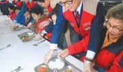 롯데백화점 광주점 직원들이 17일 광주 동구 빛고을종합사회복지관을 찾아 백미 100포대를 기증하고 급식 봉사활동을 하고 있다. 박영철 기자 skyblue@donga.com}