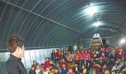 17일 전남 영암군 군서면의 비닐하우스에서 어린이와 주민 100여 명이 모여 영화와 마술 공연을 감상하고 있다. 전남문화재단은 농한기를 맞아 문화공연 시설이 없는 도서지역과 농어촌 주민을 위해 ‘찾아가는 영화관 사업’을 운영하고 있다. 박영철 기자 skyblue@donga.com}