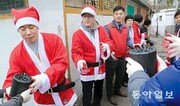 16일 광주 서구 광천동에서 신세계백화점 봉사단체인 희망산타원정대 대원들이 저소득층과 장애인가정에 연탄배달 봉사를 하고 있다. 박영철 기자 skyblue@donga.com}