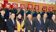 윤장현 광주시장(왼쪽에서 두 번째), 최상준 대한적십자사 광주전남지사 회장(가운데) 등이 23일 광주 북구 적십자사 강당에서 새해 적십자 회비 모금 시작을 알리는 ‘2016년 사랑의 등불’ 점화식을 갖고 있다. 박영철 기자 skyblue@donga.com}