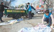 구청 불법 광고물 관리팀원들이 29일 광주 북구 양산동 일대에서 연말연시를 맞아 급증하고 있는 불법 현수막을 철거하고 있다. 박영철 기자 skyblue@donga.com}