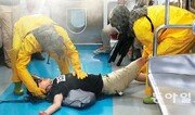 을지연습 3일 차인 19일 서울 동작구 지하철 4호선 사당역의 전동차 안에서 경찰과 소방, 군 관계자들이 독가스 테러가 발생한 상황을 가정해 부상자 구조훈련을 진행하고 있다. 김재명 기자 base@donga.com}