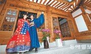 서울 종로구 무계원을 찾은 한 부부가 1일 궁중복식 입어보기 체험 행사에 참여해 서울시 무형문화재 제11호인 침선장 박광훈 씨가 제작한 전통 복식을 입고 ‘셀카’를 찍고 있다. 종로문화재단 주최로 전통 복식 등을 소개하는 ‘전통, 침선으로 꽃피우다’ 행사는 13일까지 열린다. 김재명 기자 base@donga.com}