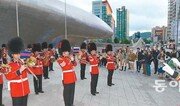 영국 왕실 근위병 군악대인 콜드스트림 가드 밴드가 1일 오후 서울 동대문디자인플라자에서 거리 공연을 펼치고 있다. 44명으로 이뤄진 이 밴드는 2일과 3일 서울 서대문구 신촌 일대에서 공연과 행진을 선보일 예정이다. 김재명 기자 base@donga.com}