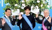 한국방문위원회는 5일 서울 중구 명동에서 외국 관광객을 친절히 맞이하자는 의식개선 운동인 ‘K스마일 캠페인’ 론칭행사를 열었다. 이날 행사에 참석한 박삼구 한국방문위원회 위원장, 배우 지창욱, 김종덕 문화체육관광부 장관(왼쪽부터)이 캠페인 참여 의지를 담은 ‘친절서약’에 서명을 하고 기념촬영을 하고 있다. 김재명 기자 base@donga.com}