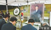 10일 서울 용산구 효창공원 이봉창 의사 묘 앞에서 열린 제83주기 이봉창 의사 추모식에서 참석자들이 헌화한 뒤 묵념하고 있다. 김재명 기자 base@donga.com}