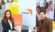 월드비전, KB국민카드, 옥션이 26일 서울 청계광장에서 연 ‘사랑의 빵 나눔 단말기 업무 협약식’에서 리듬체조 손연재 선수(왼쪽)와 배우 박상원 씨가 단말기에 카드를 대고 있다. 기부 단말기는 KB국민은행에 설치되며 KB국민카드의 신용카드를 단말기에 대면 회당 1000원이 월드비전에 기부된다. 김재명 기자 base@donga.com}
