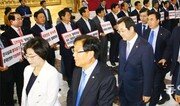5·9대선 이후 처음 열린 16일 자유한국당 의원총회에서 지도부 사퇴를 두고 격론이 오갔다. 친박(친박근혜) 진영은 정우택 당 대표 권한대행 겸 원내대표의 퇴진을 요구했으나 정 원내대표는 사실상 거부했다. 김태흠 의원은 비공개 발언에서 “새 지도부가 야당으로서 비전을 새롭게 제시해야 한다”며 현 지도부 사퇴를 요구했다. 이장우 의원도 “(지도부가) 책임지는 모습을 보이는 건 당연하다. 전당대회 조기 개최를 요구한다”고 지원사격에 나섰다. 이에 정 원내대표는 “패배에서 빨리 벗어나 (당을) 재건하고 제1야당의 면모를 보일 수 있도록 지혜를 달라”고 사퇴 요구를 일축했다. 바른정당을 탈당해 한국당에 복당한 13명을 두고도 의원들 사이에 냉기류가 흘렀다. 한선교 의원은 “대선 전에 (이들의 복당을 허용하면) 탈당도 불사하겠다고 밝혀 미안하다. 쪽팔림을 무릅쓰고 같이 가자”고 화해의 손을 내밀었다. 반면 김진태 의원은 “적어도 (복당한 의원들의) 유감 표명은 있어야 한다”고 반발했다. 이날 의총에는 복당한 13명 중 8명이 참석했다. 한국당 초선 의원 43명은 의원총회에서 “존폐 위기 앞에서 한국당은 철저히 반성하고 분골쇄신의 자세로 당 혁신에 나서야 한다”며 “계파 패권주의와 선수(選數) 우선주의를 배격하고 젊은 리더를 발굴하고 육성하라”는 내용의 성명을 발표했다.송찬욱 song@donga.com·최고야 기자}