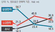 한동안 TV 시장에서 주춤했던 소니와 파나소닉이 프리미엄 TV 시장에서 무서운 성장세를 보이면서 삼성전자와 LG전자를 긴장시키고 있다. 특히 소니는 지난해 2500달러 이상 프리미엄 TV 시장에서 판매액 기준으로 시장점유율 1위를 차지했다. 지난해 처음으로 출시한 유기발광다이오드(OLED) TV의 판매량 확대가 주효했다. 20일 시장조사업체 IHS에 따르면 소니는 지난해 2500달러 이상 프리미엄 TV 시장에서 시장점유율 36.9%를 차지해 1위에 올랐다. 같은 시장에서 LG전자가 33%로 2위, 삼성전자가 18.5%로 3위를 차지했다. 소니는 2016년 2500달러 이상 시장에서 시장점유율이 24.6%(2위)였다. 당시 LG전자가 40.8%의 점유율로 1위였지만 지난해는 순위가 바뀌었다. 소니가 프리미엄 시장에서 1위를 차지할 수 있었던 이유는 OLED TV 시장에서 빠르게 점유율을 확대해나간 덕분이다. 특히 OLED TV 제품군 가운데에서도 가격이 높은 초프리미엄 TV를 집중적으로 판매하는 전략이 주효했다. 지난해 3000달러 이상 OLED TV 시장에서 소니의 점유율은 44%로 1위를 차지했다. 지난해 처음으로 OLED TV를 출시한 지 1년 만에 해당 시장에서 절반에 가까운 시장점유율을 확보한 셈이다. OLED TV의 판매 호조로 소니는 지난해 2500달러 이상 제품군 매출의 43%를 OLED TV에서 거뒀다. 지난해 2500달러 이상 OLED TV 매출액이 7억2373만 달러였는데 이는 2016년 같은 시장에서 전체 매출인 6억5474만 달러를 넘어서는 액수다. 2017년 이전에는 액정표시장치(LCD) TV만 판매했다. 일본 가전업체 파나소닉 역시 3000달러 이상 OLED TV 시장점유율이 2016년 0.2%에서 지난해 21%로 급격히 상승했다. 일본 업체가 해당 시장에서 61%의 점유율을 기록한 것이다. 일본 업체들의 추격으로 국내 전자업체들도 긴장을 늦출 수 없게 됐다. 3000달러 이상 OLED TV 시장에서 90%대의 시장점유율로 독점 체제를 구축했던 LG전자는 일본 업체들의 공세에 밀려 지난해 점유율이 30.9%로 하락했다. 2015년, 2016년과 비교해 3분의 1 수준으로 점유율이 떨어졌다. OLED TV 시장에서 1500∼3000달러 프리미엄 제품의 비중이 가장 크지만 고가일수록 수익성이 높기 때문에 3000달러 이상의 초프리미엄 제품군은 업체들 입장에서 놓칠 수 없는 시장이다. 3000달러 이상은 OLED TV 시장 전체에서 매출액 기준으로 34%를 차지할 정도로 비중이 높다. 전자업계 관계자는 “소니는 OLED TV 중에서도 고가의 라인업을 중심으로 선보이고 있고, LG전자는 1500달러부터 3000달러 이상까지 피라미드형 제품 라인업을 출시하고 있기 때문에 3000달러 이상 시장에서 소니가 점유율이 더 높을 수밖에 없다”며 “OLED TV를 판매하는 업체들이 프리미엄 시장에서 선전하면 시장 전체가 커지기 때문에 긍정적인 신호로 본다”고 말했다. 김재희 기자 jetti@donga.com}