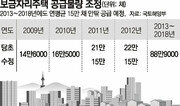 올해 공급될 보금자리주택이 당초 21만 채에서 15만 채로 줄어들고, 대부분 소형(60m² 이하) 아파트 위주로 지어진다. 권도엽 국토해양부 장관(사진)은 27일 정부과천청사에서 출입기자단과 간담회를 갖고 “2018년까지 보금자리주택 150만 채를 공급한다는 당초 목표는 유지하되 올해 공급목표는 6만 채 정도 줄일 것”이라고 밝혔다. 그는 또 “현재 보금자리주택의 70% 이상이 중소형(65m² 초과∼85m²)인데, 이를 소형 위주로 바꿔 민영주택 시장과 경쟁하지 않도록 조정하겠다”고 말했다. 국토부는 이와 관련해 60m² 이하 물량을 70∼80%로 늘리고, 나머지는 60m² 초과∼74m²로 공급하는 방침을 마련해 금명간 공개할 예정이다. 이런 조치는 주 사업자인 한국토지주택공사(LH)의 경영 사정상 대규모 투자가 어려운 점을 고려한 것이다. 서울 강남·서초, 경기 과천 등 인기 주거지역에 시세의 85% 수준으로 공급되는 보금자리주택이 민간주택 시장에 영향을 미쳐 건설경기 침체를 부추긴다는 지적도 반영됐다. 권 장관은 주거환경 개선보다 자산 증식을 목적으로 한 아파트 리모델링에 대해서는 부정적인 의견을 보였다. 그는 “재건축은 40년 정도 돼야 가능하기 때문에 이를 피해서 리모델링을 하려는 생각이 있다”며 “노후화가 많이 진행됐다면 리모델링을 허용해야 하나 그렇지 않은 경우에는 사회적으로도 지양하는 게 바람직하다”고 말했다. 이에 따라 다음 달로 예정된 정부의 리모델링 제도 개선안에 분당 등 신도시 주민과 야당 의원들이 요구해온 ‘수직 증축 및 주택 수 증가’를 불허하거나 제한하는 내용이 담길 가능성이 커졌다. 뉴타운 사업과 관련해서는 “사업 추진이 지지부진한 곳은 출구전략을 마련하고, 사업이 가능한 곳은 용적률을 높여 사업성을 높여줄 예정”이라고 했다. 한편 권 장관은 태풍 메아리로 인한 집중호우로 둑이 일부 유실된 상주보와 관련해 “설계가 미흡한 점이 있었던 것 같다”며 문제가 있었음을 시인했다. 또 일부 교각이 무너진 호국의 다리(왜관철교)에 대해선 “철저한 원인 규명을 지시했으며 설계·시공업체를 통해 복구 책임을 지게 하도록 하겠다”고 밝혔다. 황재성 기자 jsonhng@donga.com}