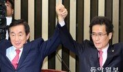 12일 자유한국당 차기 원내대표 경선 투표가 3파전으로 확정됐다. 정책위의장 후보 러닝메이트도 후보등록일인 10일 모두 공개됐다. 친홍(친홍준표) 성향의 김성태 의원(3선·서울 강서을)과 친박(친박근혜) 성향인 홍문종 의원(4선·경기 의정부을)은 모두 범(汎)친박 의원을 정책위의장 후보로 발표했다. 그러나 전략은 서로 다르다. 김 의원의 선택은 함진규 의원(재선·경기 시흥갑)이다. 비박(비박근혜)과 친박이 손잡는 구도로 계파 청산에 방점을 둔 것이다. 그는 또 자신을 “중동 건설노동자 출신 노동운동가”, 함 의원을 “땅 한 평 갖지 못한 소작농의 아들”이라고 소개하며 차별화에도 나섰다. 김 의원은 국회 기자회견에서 “다른 후보들은 (조합이) 사실상 기존의 친박이나 범친박에 해당한다”고 지적했다. 홍 의원은 친박 성향의 유기준 의원과 단일화를 이뤄 친박 표 분산을 막았다. 정책위의장 러닝메이트도 범친박으로 분류되는 이채익 의원(재선·울산 남갑)과 짝을 이뤘다. 이 의원은 부울경(부산울산경남) 표를 겨냥할 수 있고 문재인 정부의 탈원전 정책 등에 각을 세워 왔다. 홍 의원은 ‘친박 단일 후보’라는 시선을 의식한 듯 “이미 없어진 지 오래된 계파가 부활하는 일은 존재하지 않을 것”이라고 강조했다. 이에 앞서 중립 후보를 표방한 한선교 의원(4선·경기 용인병)은 후보 단일화를 한 이주영 의원(5선·경남 창원마산합포)을 정책위의장 후보로 낙점했다. 이 의원은 후보 등록 후 “계파 없이 하나가 돼야 강한 야당이 될 수 있다”고 밝혔다. 당내에는 “정책위의장이 차별화되지 않는 상황에서 후보들의 역량이 더 중요해졌다”는 반응도 있다. 김 의원은 “국회선진화법 때문에 야당의 투쟁이 저지되는 경우는 없을 것”이라고 대여 강경투쟁을 예고했다. 홍 의원도 “지금은 결코 여소야대 정국이 아니다. 상대할 집권여당은 (국민의당을 포함한) 160석 거대 공룡 정당”이라고 대여 협상력을 강조했다. 한 의원은 기자들과 만나 홍준표 대표에 대해 “샛문을 열어놨다고 하고 복당파를 받고 문을 닫았다고 하고 왜 자기가 결정하느냐”고 비판하며 비홍(비홍준표) 결집에 나섰다.송찬욱 song@donga.com·박훈상 기자}