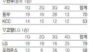 LG가 인삼공사를 꺾고 4승(6패)째를 거두며 9위에서 7위로 순위를 두 계단 끌어올렸다. LG는 8일 인삼공사와의 창원 안방 경기에서 86-61로 완승을 거뒀다. LG는 공격 제한시간에 쫓겨 허겁지겁 던진 3점슛이 림 안으로 빨려 들어갈 만큼 경기가 잘 풀린 날이었다. LG는 9개의 3점슛이 터진 외곽포와 리바운드에서 38-29로 앞선 골밑 장악력을 앞세워 편안한 승리를 낚았다. 전반을 30-32로 뒤졌던 LG는 3쿼터 들어 상대 득점을 13점으로 묶는 동안 34점을 몰아쳐 전세를 뒤집었다. LG 김영환은 3쿼터에서만 10점을 집중시키는 등 16득점으로 승리에 힘을 보탰다. 인삼공사는 주 득점원 후안 파틸로가 3경기 연속 10득점에 묶이는 부진으로 3연패를 당했다. 모비스는 삼성을 77-60으로 꺾고 7승(4패)째를 올려 단독 3위가 됐다. 모비스는 1월 신인 드래프트에서 전체 1순위로 뽑힌 가드 김시래가 3점슛 4개를 포함해 데뷔 후 개인 최다인 21점을 몰아넣으며 승리를 이끌었다. 아말 맥카스킬의 대체 용병으로 이날 국내 무대에 처음 선을 보인 모비스의 커티스 위더스는 21분가량을 뛰며 9득점, 12리바운드를 기록해 합격점을 받았다.이종석 기자 wing@donga.com}