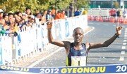 “한국과 인연인 있는 것 같다. 기회가 된다면 내년에도 또 뛰고 싶다.” 21일 열린 2012경주국제마라톤을 2연패한 윌슨 로야나에 에루페(24·케냐)는 한국과의 인연을 얘기하면서 “에이전트와 의논해야겠지만 한국에서 또 뛰고 싶다. 다시 뛰면 더 좋은 기록을 낼 수 있을 것 같다”고 했다. 그는 지난해 경주국제마라톤을 시작으로 올 3월 서울국제마라톤 겸 제83회 동아마라톤에서 연이어 우승했다. 지난해 경주국제마라톤은 그가 태어나 처음으로 비행기를 타고 출전했던 첫 국제대회였다. 그러고 7개월 만에 다시 찾은 한국에서 또 정상에 오르면서 국내에서 뛴 3개 대회에서 모두 1등을 차지했다. 에루페는 풀코스 첫 도전이던 2011년 몸바사 대회까지 네 차례 뛴 풀코스 대회에서 모조리 우승하면서 ‘뛰었다 하면 1등’이라는 공식을 이어갔다. 국내 개최 대회 역대 2위 기록에 해당하는 2시간6분46초로 결승선을 통과한 에루페는 우승 상금 5만 달러에다 2시간 6분대 기록 상금 5만 달러까지 총 10만 달러(약 1억1000만 원)의 두둑한 상금을 챙기는 겹경사를 누렸다. 이번 대회에서는 7위까지 2시간9분대에 골인하면서 기록 상금 1만 달러(약 1100만 원)를 받았을 만큼 기록이 풍년이었다. 에루페는 “2시간8분대에 완주해 대회 기록을 깨는 것이 목표였다. 하지만 막판까지 힘이 떨어지지 않아 생각했던 것보다 더 좋은 기록이 나왔다”고 했다. 그는 31km 지점까지 야이루스 온도라 찬치마(28·케냐)와 경쟁하다 33km 지점부터 치고나가면서 독주하기 시작했다. 30km까지 매 5km 구간을 15분대에 끊었지만 이후 40km까지 두 번의 5km 구간은 14분대 중반에 주파하는 무서운 뒷심을 보였다. 그는 “초반에 무리하지 않고 힘을 아꼈기 때문에 막판에 속도를 높일 수 있었다”고 덧붙였다. 에루페를 발굴해 지도하고 있는 오창석 백석대 스포츠과학부 교수는 “막판 10km만 놓고 보면 세계 기록에 뒤지지 않을 만큼 좋은 구간 기록이다”고 말했다. 한편 이날 행사장에는 이주석 경북도 행정부지사와 최양식 경주시장, 정석호 경주시의회 의장, 정식원 경주경찰서장, 주형결 대한육상경기연맹 수석부회장, 박장수 아식스코리아 사장, 이청구 월성원자력본부장, 강성주 포항MBC 사장, 서남수 위덕대 총장, 김원표 경주시체육회 상임부회장, 이흥구 경주시육상연맹 회장, 김은호 경주상공회의소 회장, 이상효 박병훈 경북도의원, 최맹호 동아일보사 부사장 등이 참석해 자리를 빛냈다. 최 시장은 5km 건강달리기를 완주했다.경주=이종석 기자 wing@donga.com}