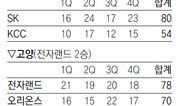국내 최장신 센터 하승진(221cm)이 공익근무로 전력에서 빠진 KCC의 연패가 길어지고 있다. KCC는 7일 SK와의 전주 안방 경기에서 54-80으로 완패했다. 속절없이 7연패에 빠진 최하위 KCC는 1승 10패가 됐다. SK가 KCC(10개)의 두 배인 20개의 턴오버를 기록하면서 선두 팀답지 않은 경기를 했지만 리바운드 싸움에서 일방적으로 밀린 KCC는 어쩔 도리가 없었다. KCC는 리바운드 수에서 22-45로 크게 밀렸다. KCC는 외국인 선수 드래프트에서 전체 1순위로 뽑힌 코트니 심스가 20점을 넣으면서 분전했을 뿐 나머지 선수들은 모두 한 자릿수 득점에 머물렀다. SK는 12득점, 10리바운드로 데뷔 후 첫 더블 더블의 활약을 펼친 신인 최부경을 포함해 애런 헤인즈(16득점 9리바운드), 변기훈(12득점), 김동우(10득점) 등 고른 득점포를 가동해 승리를 낚았다. 4연승을 달린 SK는 9승(2패)째를 거두면서 단독 선두를 지켰다. 2위 전자랜드는 고양 방문 경기에서 오리온스를 78-70으로 꺾고 8승(2패)째를 올려 SK와의 승차를 0.5경기로 유지했다. 전자랜드는 리카르도 포웰이 23득점, 14리바운드로 공격과 수비에서 맹활약했다. 경기를 앞두고 “지난 시즌 2라운드 성적이 크게 부진해 시즌 내내 고생했다”고 했던 전자랜드 유도훈 감독은 2라운드 첫 단추를 잘 끼웠다. 오리온스는 믿었던 테렌스 레더가 4득점에 그치는 심한 부진으로 안방에서 전자랜드에 9경기를 연속 내주는 수모를 당했다. 전날까지 공동 3위였던 오리온스는 6승 5패가 돼 5위로 떨어졌다.이종석 기자 wing@donga.com}