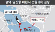 서해대교가 가로지르는 아산만 바다 한가운데 있는 평택-당진항 매립지가 경기 평택시와 충남 당진시에 ‘분할 귀속’된다. 행정자치부 소속 지방자치단체 중앙분쟁조정위원회(위원장 홍정선)는 13일 평택-당진항의 첫 제방 내부 매립지 총 28만2760.7m²를 당진시 관할로, 이를 제외한 나머지 매립지 67만9589.8m²는 평택시 관할로 결정했다. 관할권 분쟁이 시작된 지 5년 만이다. 매립지의 첫 방조제를 기준으로 안쪽(서해대교 북쪽)은 당진시로, 넓은 바깥쪽(서해대교 남쪽)은 평택시로 관할권을 나눈 셈이다. 홍정선 위원장은 “이번 결정은 지리적 인접성, 주민 편의성, 국토 이용 효율성 등을 종합적으로 고려해 판단했다”고 말했다. 이번 관할권 결정으로 평택의 매립지 면적은 당진보다 2배나 크다. 또 앞으로 매립이 진행되면 평택에 속하는 매립지는 계속 넓어진다. 이에 따라 평택시는 환영의 뜻을 밝혔지만, 당진시는 대법원 제소도 불사하겠다고 밝혀 관할권 분쟁은 법정 싸움으로 이어질 것으로 전망된다. 처음 서부두 제방이 만들어지면서 분쟁이 일자 헌법재판소는 2004년 해상경계선을 근거로 당진시 관할로 결정을 내렸다. 당진시는 이를 근거로 추가 매립지도 행정구역으로 등록했다. 평택시는 이에 반발해 2010년 신생 매립지의 귀속 지방자치단체를 결정해 달라며 행자부에 조정을 신청했다. 우경임 기자 woohaha@donga.com}
