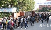 13일 서울 강남구 대치동 단국대사범대부속고에서 치러진 삼성직무적성검사(SSAT)를 마친 취업준비생들이 학교 밖으로 걸어 나오고 있다. 이날 전국 83개 고사장에서 응시생 9만여 명이 130분간 SSAT를 치렀다. 삼성이 이번 공채에서 채용할 인원은 5500명이다. 김재명 기자 base@donga.com}