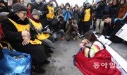 일본군 위안부 문제 해결을 위한 1107번째 정기 수요집회가 1일 오후 서울 종로구 중학동 주한 일본대사관 앞에서 열렸다. 이날 참석한 위안부 할머니들은 한복을 곱게 차려입은 여학생들로부터 새해를 맞아 절을 받았다. 할머니들은 학생들에게 새해 선물로 양말을 나누어 줬다. 김재명 기자 base@donga.com}
