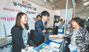 12일 서울 중구 서울광장에서 열린 ‘2015 신문·뉴미디어 엑스포’ 내 동아미디어그룹 부스에서 한 시민이 환한 표정으로 신문을 건네받고 있다. 이번 엑스포는 신문 등 미디어의 미래를 보여주기 위한 것으로 15일까지 열린다. 김재명 기자 base@donga.com}