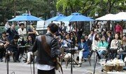 12일 서울 종로구 세종문화회관 뒤 예인마당에서 펼쳐진 인디뮤직 그룹 ‘이채언루트(Echae en Route)’의 공연을 많은 시민들이 즐기고 있다. 이날부터 29일까지(월요일·주말 제외) 예인마당에서는 점심시간 직장인을 위한 ‘정오의 예술무대’가 열린다. 김재명 기자 base@donga.com}