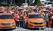 택시 운전사 재능기부 봉사단체인 ‘구로구 나들이 봉사단’이 13일 서울 구로구청 광장에서 저소득층, 홀몸 어르신, 장애인을 태우고 인천 강화도로 나들이를 떠나기에 앞서 함께 기념사진을 찍고 있다. 2003년 설립된 이 단체는 그동안 구로구 내 소외계층을 위해 2672번의 나들이 봉사활동을 해 왔다. 김재명 기자 base@donga.com}