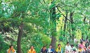 14일 서울 서대문구 안산 자락길에서 휠체어에 탄 노인들이 관내 자원봉사자의 도움으로 나들이를 즐기고 있다. 서대문구는 이런 노인 봉사활동을 14개 동별로 월 1회 실시할 예정이다. 김재명 기자 base@donga.com}