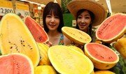 이마트는 18일 이색 먹을거리인 ‘망고수박’과 ‘황금수박’을 전국 매장에서 선보였다. 일반 수박보다 당도가 높은 ‘망고수박’(1만9500∼2만3500원)은 속은 노랗고 겉은 초록색인 것과 속과 겉 모두 노란 것 등 두 가지가 있다. 겉은 노랗고 속은 빨간 ‘황금수박’의 가격은 2만3000원 내외다. 이날 서울 용산구 한강대로 이마트 용산점에서 모델들이 수박을 선보이고 있다. 김재명 기자 base@donga.com}