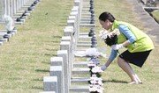 26일 국립서울현충원에서 한 농협 직원이 6·25전쟁 전사자 묘비 앞에 헌화하고 있다. 호국보훈의 달인 6월을 앞두고 이날 농협 임직원과 대학생 홍보대사들은 헌화 봉사활동을 했다. 김재명 기자 base@donga.com}