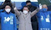 “마지막 단 한 사람까지 참여해 어게인 2002, 승리의 역사를 함께 만들어주시겠습니까” 더불어민주당 이재명 대선 후보가 8일 고(故) 노무현 전 대통령이 승리했던 2002년 대선을 언급하면서 약 5개월 동안의 대선 레이스의 피날레를 장식했다. 이날 서울 광화문 청계광장에서 열린 마지막 유세는 ‘상록수’를 함께 부르는 것으로 마무리됐다. 제창에서 노 전 대통령의 목소리가 함께 흘러나오자 이 후보는 손수건을 꺼내 눈물을 훔치기도 했다. 이 후보는 “이 곳은 국민들이 촛불을 높이 들어 이 땅에 민주주의를 바로 세운 역사적인 공간”이라며 “우리가 1700만 촛불로 꿈꾸었던 나라, 국민주권이 온전히 실현되는 나라, 국민이 화합하는 새 나라에서 만나자”고 했다. 경선에서 이 후보와 경쟁한 민주당 이낙연 전 대표와 정세균 전 국무총리도 자리를 함께 했다.이날 앞서 진행된 유세에서 이 후보는 “위기에 강한, 유능한 경제대통령”을 강조하며 “실전에 바로 투입될 수 있는 준비된 프로 대통령 후보가 누구냐”며 자신이 대통령 적임자라고 목소리를 높였다. 동시에 이 후보는 선거 판세에 대해 “안개상황”이라며 “마지막 1초까지, 마지막 한 명까지 설득해 달라”고 호소했다. 이 후보는 이날 서울 여의도 첫 일정부터 “위기를 극복하는 게 아무나 대충한다고 되지 않는다”며 ‘인물론’을 부각시켰다. 이어 인천 청라에서 “기회 부족 때문에 여성과 남성, 지방과 수도권이 갈라져서 싸우고 청년과 기성세대가 싸우는 세상을 바꿔야 한다”며 “유능한 리더가 필요하다, 경제를 살릴, 경제를 잘아는 대통령이 필요하다”고 말했다. 경기 지역 유세에서는 경기도지사, 성남시장 재직 시절 95%가 넘는 공약이행률을 기록했다고 강조했다. 이 후보는 광명에서 “경기도민은 이재명이 약속을 지키는, 능력있는, 실력을 실적으로 증명한 정치인임을 대한민국 전역에 알려주시는 분들”이라며 “이재명은 농부의 실력에 따라 옥토든 자갈밭이든 얼마든 성과를 낼 수 있고 국민 삶을 더 풍요롭게 만들 수 있다는 사실을 확실하게 증명해드리겠다”고 말했다. 그러면서 이 후보는 “국정은 연습장이 아니다”라며 국민의힘 윤석열 대선 후보를 겨냥했다. 또 “평화를 관리하고 한반도를 안정적으로 유지하는 게 정말 중요한 일인데 쓸데없이 사드(THAAD·고고도미사일방어체계)니 선제타격이니 이런 소리 하지 말고 평화롭게 공동으로 함께 번영하는 나라를 만들어야 한다”고 꼬집었다. 여성 유권자들을 향한 호소도 잊지 않았다. 이 후보는 “남녀간의 구조적 성차별이 존재한다는 것은 부인할 수 없는 사실”이라며 “차별과 격차를 극복하기 위한 노력들이 이어져야 한다”고 했다. 인천·광명=허동준 기자 hungry@donga.com}