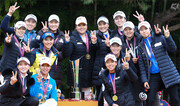 미국여자프로골프(LPGA)투어에서 뛰는 선수들이 한국여자프로골프(KLPGA)투어 소속 선수들을 상대로 짜릿한 역전승을 거두며 2년 연속 우승 트로피에 자신들의 이름을 새겼다. LPGA 팀은 27일 부산 동래베네스트골프장에서 열린 챔피언스 트로피 박인비 인비테이셔널 마지막 날 일대일 매치플레이 12경기에서 8승 4패로 앞서 최종 승점 13-11로 이겼다. 지난해에는 LPGA 팀이 14-10으로 완승을 거뒀다. 전날까지 포볼(2인 1조로 각자의 공을 쳐서 좋은 점수를 팀 성적으로 삼는 방식), 포섬 경기(공 1개를 같은 조의 두 선수가 번갈아 치는 방식)에서 5승 7패로 열세였던 LPGA 팀은 이날 양희영, 이미림, 허미정, 이미향, 지은희, 최운정, 김효주, 김세영이 승점 1점씩을 보태 김지현, 김지현2, 김해림, 고진영이 승리를 추가한 KLPGA 팀을 압도했다. 특히 경기 막판 김효주는 이승현을 맞아 16, 17번홀에서 연속 파 세이브로 LPGA 팀의 우승을 확정한 뒤 18번홀 버디로 동료들의 축하를 받았다. 부상으로 출전하지 못한 LPGA 팀 박인비는 “확실히 KLPGA 선수들의 기량이 좋아졌다는 걸 느낄 수 있었다. 둘째 날까지 뒤져 우리 선수들의 의지가 강해졌다”고 말했다. KLPGA 팀의 주장 김해림은 “지난해보다 점수 차가 줄었다. 다소 방심한 탓에 패했지만 내년에는 꼭 이길 것이다”라고 다짐했다. LPGA 팀은 우승 상금 6억5000만 원을 받았으며, KLPGA 팀에는 3억5000만 원이 돌아갔다. 각각 3승을 따낸 최운정과 고진영은 팀 최우수선수에 선정돼 1000만 원 상당의 시계를 받았다. 김종석 기자 kjs0123@donga.com}