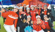 “세계 넘버원 KLPGA∼, 세계를 향해∼.” 한국여자프로골프(KLPGA)협회의 로고송은 이렇게 시작된다. KLPGA투어에서 뛰는 선수들로 팀을 이룬 ‘팀 KLPGA’가 미국여자프로골프(LPGA)투어에서 뛰는 한국(계) 선수들로 구성된 ‘팀 LPGA’를 완파했다. ‘팀 KLPGA’는 1일 경북 경주 블루원 디아너스 CC(파72)에서 열린 2019 오렌지라이프 챔피언스트로피 박인비 인비테이셔널 최종일 싱글매치 플레이에서 승점 7.5점을 따내 합계 승점 15-9로 ‘팀 LPGA’를 이겼다. 2015년 처음 이 대회가 시작된 이후 역대 최다 점수 차 승리다. 박인비 인비테이셔널은 KLPGA 투어 선수 13명과 LPGA 투어에서 뛰는 한국(계) 선수 13명이 맞붙는 팀 대항전이다. ‘팀 KLPGA’는 2017년에 이어 두 번째로 우승하며 종합 전적에서 2승 3패를 기록했다. ‘팀 KLPGA’는 사흘 내내 ‘팀 LPGA’를 압도했다. 첫날 포볼(2인 1조로 각자의 공을 쳐 좋은 점수를 팀 성적으로 삼는 방식)에서 3승 1무 2패의 우위를 보였던 ‘팀 KLPGA’는 둘째 날 포섬(공 1개를 두 선수가 번갈아 치는 방식)에서도 3승 2무 1패로 앞섰다. 그리고 각 팀 12명의 선수가 싱글 매치 플레이 방식으로 치른 마지막 날 경기에서도 7승 1무 4패로 ‘팀 LPGA’의 우위에 섰다. ‘팀 KLPGA’의 에이스는 김아림이었다. 포볼에서 박민지와 짝을 이룬 김아림은 이정은-허미정 조를 4홀 차로 이겼다. 이정은은 올해 LPGA 투어 신인왕이다. 둘째 날 포섬에서는 김지현과 함께 고진영-허미정 조를 2홀 차로 꺾었다. 고진영은 올해 세계 랭킹 1위를 지키고 있는 선수다. 그리고 이날 마지막 싱글 매치 플레이에서도 유소연을 4홀 차로 이겼다. 김아림은 이번 대회 3전 전승을 비롯해 2년 동안 6전 전승 행진을 이어갔다. 김아림은 경기 후 대회 우승팀 최우수선수(MVP)로 선정됐다. 이번 대회에 처음 출전한 박민지와 임희정도 3전 전승을 올려 신예 돌풍을 일으켰다. 이정은과 고진영은 마지막 날 싱글 매치 플레이에서 승리하며 팀 LPGA의 자존심을 지켰다. 이정은은 올해 KLPGA 투어 신인왕 조아연에게 5홀 차 대승을 거뒀다. 고진영 역시 올해 KLPGA 투어 대상을 차지한 최혜진을 5홀 차로 이겼다. 준우승 팀 MVP는 이정은에게 돌아갔다. 우승을 차지한 ‘팀 KLPGA’는 7억 원, 준우승한 ‘팀 LPGA’는 5억 원의 상금을 각각 받았다.이헌재 기자 uni@donga.com}