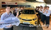 기아자동차는 지난 19일 오후 브랜드 체험관인 ‘비트360’에서 스토닉 1호차 전달식을 진행했다. 1호차 주인공으로는 출산을 앞둔 예비 아빠 장두석(34)씨가 선정됐다.스토닉은 기아차의 소형차 신형 프라이드를 기반으로 만들어진 소형 SUV다. 엔트리 트림의 경우 국내 디젤 SUV로는 비교적 저렴한 1800만 원대의 가격을 갖췄고 연비가 우수하다. 외관은 간결하면서 스포티한 이미지를 강조해 젊은 세대를 주요 타깃으로 설정했다. 파워트레인은 1.6리터 디젤 엔진과 7단 듀얼클러치 변속기가 조합됐다. 최고출력 110마력, 최대토크 30.6kg.m의 성능을 발휘한다. 연비는 복합 기준으로 리터당 17.0km(15인치 타이어 기준)다.1호차 주인공으로 선정된 장두석씨는 서울특별시교육청에서 근무하는 남성으로 오는 11월 첫 아이 출산을 앞두고 있는 것으로 전해졌다. 장씨는 중간 모델인 트렌디 트림에 후방카메라와 스마트 내비게이션으로 구성된 옵션을 추가했다.기아차는 예비 아빠로서 새로운 출발을 앞두고 있는 장두석씨가 대한민국 대표 엔트리 SUV를 표바하는 스토닉의 이미지와 잘 어울려 1호차 고객으로 선정했다고 설명했다.장두석씨는 “우수한 경제성이 스토닉을 선택한 이유”라며 “여기에 젊은 감각의 디자인과 다양한 안전사양도 차량 선택에 영향을 줬다”고 말했다.동아닷컴 김민범 기자 mbkim@donga.com}