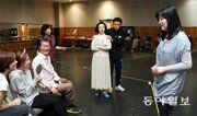 《 “형, 여기 서울역인데 엄마가 없어졌어.” “엄마가 없어져? 그게 무슨 소리야?” “아버지가 지하철 타다가 잃어버리셨대. 미안해. 내가 나갔어야 했는데.” 6월 7일 공연되는 연극 ‘엄마를 부탁해’ 연습이 진행되고 있는 28일 서울 중구 남산창작센터 연습실. 한진섭 연출가가 앉아있는 테이블 위에 연두색 보자기에 싸인떡 상자가 다소곳이 놓여 있었다. 떡을 들고 온 이는 원작 소설 ‘엄마를 부탁해’를 쓴 작가 신경숙 씨. 이날 배우와 제작진을 응원하기 위해 찾아왔다. 》‘엄마…’에 이어 ‘어디선가 나를 찾는 전화벨이 울리고’가 영어로 출판돼 신 씨는 6월 2일 미국 뉴욕으로 출국해 8월에 돌아온다. 그는 “공연장에서 연극을 보지 못하는 게 많이 서운해 연습이라도 보고 싶어서 왔다”고 했다. ‘엄마…’는 2010년 초연 이후 세 번째 공연. 어머니 역의 손숙 씨와 약사 역의 이동근 씨를 빼고 모두 새로 합류했다. 아버지 역은 전무송 씨, 장녀 역은 예지원 씨가 맡았다. 장독대가 올망졸망 자리 잡은 무대에서는 여자도 배워야 한다며 딸도 서울로 보내고, 살림에 지쳐 홍어 껍질을 벗기지 않고 제사상에 올리겠다고 선언하는 엄마와 가족들의 모습이 펼쳐졌다. 신 씨는 1시간 반가량 진행된 리허설을 뚫어질 듯 바라보다 간간이 미소를 지었다. 그는 “글로 표현된 내용이 세밀하게 재현돼 가슴 깊이 스며들어온다”고 말했다. 연습이 끝난 후 손숙 전무송 씨가 신 씨에게 대본을 들고 와 사인을 요청했다. 신 씨가 “아휴, 제가 어떻게 선생님들께 사인을 해드려요”라며 사양하자 손 씨는 “원작자에게 사인 받는 게 의미가 있죠”라며 웃었다. 신 씨는 ‘손숙 선생님 멋졌어요♡’ ‘전무송 선생님 아버지 역할 잘 봤습니다^^’라고 수줍게 사인했다. 다른 배우들도 대본을 들고 와 줄지어 사인을 받았다. 신 씨는 “손숙 선생님이 어머니로 나오신 연극은 다 봤는데, 이번 작품은 업히는 장면도 있고 움직임이 제일 많은 것 같다. 공연 내내 또렷한 목소리를 유지하시는 게 쉽지 않을 것 같은데 에너지가 넘치신다는 걸 느꼈다”고 말했다. 손 씨는 웃으며 “작품이 워낙 유명해서 다들 상당한 부담을 갖고 연기하고 있다”고 답했다. 여기저기서 배우들이 고개를 끄덕였다. 전 씨는 “아내에게 잘해 주지 못한 데 대해 깊은 회한을 가진 아버지의 마음을 활자로 표현되지 않은 부분까지 보여주고 싶다”고 말했다. 이번 공연은 감정을 절제해서 표현하는 데 중점을 뒀다. 어머니도 생활인으로서의 모습이 많이 묘사됐다. 한진섭 연출가는 “참고 인내만 하는 엄마가 아니라 화나면 소리 지르고 농담도 하는, 한 인간으로서의 엄마를 그리고자 했다”고 말했다. 신 씨는 “원작자는 뒤에 있는 사람”이라며 “연극은 찬란한 순간이 모여 슬픔과 감동을 주고 마음을 치유해 준 뒤 사라진다. 그 소멸성을 끝까지 감내하는 배우들이 존경스럽다”고 말했다. 이어 “소설엔 4개의 목소리가 나오는데 연극은 배우들이 각자 목소리를 내면서 새롭게 탄생했다. 소설을 읽은 분들도 연극을 새롭게 느끼실 것 같다”고 말했다. 6월 7∼29일 서울 예술의전당 CJ토월극장. 3만∼6만 원. 02-577-1987손효림 기자 aryssong@donga.com}