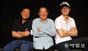 “할멈∼.” “부르셨어요?” 의자왕 역의 송영광이 부르자 흰 한복을 입은 채 지팡이를 베고 자고 있던 이가 일어난다. 쪽 찐 흰머리 가발을 쓴 할멈 무당 역의 성지루(46)였다. 잠시 후. “여게 뉘집 요강 있으면 나 좀 가져다 줄라우”라며 뽀글뽀글한 파마머리 가발에 선글라스를 쓴 이가 등장했다. 이번엔 젊은 남자 무당인 영덕 역의 박희순(44)이다. 극단 목화의 창단 30주년 기념 연극 ‘백마강 달밤에’(극본·연출 오태석) 연습이 진행되고 있는 13일 서울 대학로 예술마당. 성지루 박희순 손병호 등 극단 목화 출신으로 영화, 드라마에서 활약하고 있는 배우들이 뭉쳤다. 1993년 초연된 ‘백마강…’은 신라와 당나라 연합군에게 몰살당한 백제인의 원혼을 위로하는 굿판을 그린 작품. 과거와 현재가 교차하는 가운데 토속적이면서도 해학적인 무대가 펼쳐진다. 성지루는 할멈 무당, 박희순은 젊은 남자 무당, 손병호는 의자왕 역으로 각각 더블 캐스팅됐다. 오태석 연출가(74)와 성지루 박희순과 이야기를 나눴다. ▽성지루=아버지 칠순 잔치 하는 기분이에요. 10년 만에 희순이랑 같이 무대에 서네요. ‘백마강…’은 여러 번 공연했지만 처음 하는 것처럼 어려워요. ▽박희순=‘백마강…’에서 지루 형 바보 연기는 최고였어요. ‘성지루 레전드’였다니까요.(웃음) ▽오태석=연극은 마라톤이야. 긴 숨쉬기를 잊어버리지 않았나 걱정했는데 3, 4일 만에 복구하대. ▽박=선생님이 뛰어나와서 시연하는 거며 하나도 안 바뀌었어요. 타임머신 타고 옛날로 돌아온 것 같아요. ▽오=둘 다 여물었어. 치장 안 하고 그대로 보여주는 게. 지루는 더 묵직해진 메주 같고, 희순이는 오장육부 몸시계가 좋아.(웃음) 드라마와 영화에서 왕성하게 활동하다 연어처럼 목화 기념 공연에 참여한 두 배우를 대견한 눈빛으로 바라보던 오 연출은 “편하게 얘기 나누라”며 자리를 비켜줬다. ▽박=처음 연습할 때는 에너지를 발산하는 게 힘들었어요. 나 혼자 말끝 내리면 ‘영화 하더니 저런다’ 할까 봐 후배들 모르게 일찍 나와 연습했어요. ▽성=연기가 충분히 농익은 후 관객과 만나고 싶은데….(요즘 SBS 드라마 ‘너희들은 포위됐다’에 출연하고 있다) 최선을 다하고 있지만 덜 익힌 채 보여주다 후배들에게 누가 되지 않을까 걱정돼요. ▽박=아, 옛날에 새벽까지 술 마시고 아침에 겔포스 짜 먹던 기억나요.(웃음) ▽성=무대에서 신문지 덮고 잤는데….(웃음) 희순이에게 많이 의지했어요. ‘아침 한때 눈이나 비’에서는 둘이 양아치 역을 했어요. 제 성격이 많이 어두워 가벼운 연기가 안 되는 거예요. 선생님에게 엄청 혼난 뒤 희순이에게 ‘지금부터 무조건 웃을 거니까 딴 사람들이 다 미친놈이라고 해도 너만큼은 나를 알아줘라’고 했어요. 그러고는 공연 끝날 때까지 이렇게(하회탈처럼 입꼬리를 올리며) 다녔어요. 결국 그 역을 소화해 냈어요. ▽박=형이 참 고생을 많이 했어요. 똑같은 일도 형이 하면 더 불쌍해 보였어요.(웃음) ▽성=(오른손 엄지손가락을 보여주며) 티눈처럼 보이지만 세트 만드느라 대패질하다 가시가 박힌 자국이에요. 손재주가 없어도 목화에 들어오면 톱 망치 못 줄자만 있으면 집 한 채 올리게 돼 있어요.(웃음) ‘여우와 사랑을’에서 나온 자동차도 제가 만든 거예요! ▽박=목화에 있는 12년 동안 개근했어요. 한 번 빠지면 배역이 없어지거든요. 선생님은 극본을 직접 쓰시면서 연출하시니까 배역 죽이고 살리는 게 다 선생님 손에 있었죠.(웃음) ▽성=목화는 진짜 땀 많이 흘리고 에너지를 많이 발산하는 극단이에요. ‘목화에서 10년 했다’고 하면 다들 인정해줘요. ▽박=이번 무대에 서기 전에는 많이 걱정됐는데 막상 서 보니 잘한 것 같아요. 내가 어떤 뿌리에서 컸는지, 어디를 딛고 있는지 확인하게 됐으니까요. 20일∼7월 6일 서울 남산예술센터 드라마센터. 3만 원. 02-745-3966 손효림 기자 aryssong@donga.com}