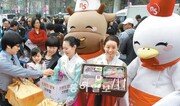 NS홈쇼핑은 23일 서울 종로구 청계광장에서 5만 원 상당의 축산물 세트를 1만 원에 선착순 1000명에게 판매했다. 26일 열리는 ‘제5회 우리축산물요리경연축제’를 홍보하기 위해 마련한 행사로 수익금은 어린이 양육 단체에 전달할 예정이다. 김재명 기자 base@donga.com}