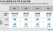 국민 신한 우리 하나 등 국내 4대 시중은행의 직원 2명 중 1명은 여성이지만 여성 임원은 임원 20명당 1명에도 못 미치는 것으로 나타났다. 이들 은행의 여성 임원은 모두 본부장급으로 4대 은행의 부행장 56명 중 여성 부행장은 1명도 없었다. 여성 대통령 시대는 열렸지만 금융권의 유리천장(일을 잘하고 똑똑해도 여성이 높은 지위에 오르기까지 뚫어야 하는 보이지 않는 장벽을 일컫는 말)은 여전히 두꺼웠다○ 4대 은행 여성 부행장 ‘0’ 20일 금융권에 따르면 국내 4대 시중은행에서 근무하는 정규직 여성은 2만7601명으로 전체 직원의 48%였다. 하나은행이 56.9%로 여성 직원 비중이 가장 높았고 국민(47.0%) 우리(46.0%) 신한(43.0%) 순이었다. 은행의 여직원 수는 증가하고 있지만 여성 임원 비중은 4대 은행 평균이 4.8%에 그쳤다. 특히 임원 중에서도 상위직급인 부행장은 한 명도 없고 본부장만 11명이었다. 고용노동부에 따르면 2010년 기준 종업원 1000명 이상인 대기업의 여성 임원 비율은 6.5% 수준이다. 여성이 직원의 절반인 은행에서 여성 임원 비율은 기업보다 낮은 셈. 주요 시중은행 중 부행장 이상의 여성 임원이 있는 곳은 IBK기업은행, 한국씨티은행, 한국 스탠다드차타드(SC)은행이다. 권선주 기업은행 리스크관리본부 부행장은 IBK기업은행이 창립 50년 만에 배출한 첫 여성 부행장이다. 그는 공채로 입사해 지점장, 센터장, 본부장을 거쳐 2011년 부행장 자리에 올랐다. 여성 임원 비중이 11.8%로 비교적 높은 한국씨티은행에는 여성 부행장이 3명이다. 김명옥, 유명순, 김정원 부행장이 각각 업무지원, 기업금융상품, 재무기획그룹을 이끈다. SC은행에는 인사본부장과 변화관리추진본부장을 겸직하는 제니스 리 부행장이 있다.○ 여성 대통령 시대, 유리천장 깨질까 금융권은 첫 여성 대통령 취임을 앞두고 유리천장이 깨지지 않을까 주목하는 분위기다. 능력 있는 여성 중간관리자 층이 과거보다 두꺼워져 은행에서 여성 임원의 비중이 늘어날 것으로 보고 있다. 박근혜 대통령 당선인의 핵심 여성정책 공약인 ‘여성 인재 10만 명 양성 프로젝트’ 같은 움직임이 은행권의 여성 임원을 늘릴 수 있다는 전망도 나온다. 최근 국회에는 공기업과 준정부기관의 여성 임원 비율을 5년 내 30%까지 확대한다는 법안이 제출되기도 했다. 실제 일부 은행을 중심으로 최근 여성 임원들이 급부상하고 있다. 부산은행은 2일 설립 이래 처음으로 여성을 1급 지점장으로 승진시켰다. 주인공은 권미희 해운대 마린시티 제니스파크 지점장이다. 이 은행의 4급(과장급) 승진자 56명 중 17명이, 3급(부지점장) 승진자 57명 중 5명이 여성이었다. 한국은행도 창립 62년 만에 처음으로 여성 1급 승진자를 배출했다. 서영경 금융시장 부장은 2011년 2급 승진 후 2년 만에 1급으로 발탁됐다. 권선주 IBK기업은행 부행장은 “여성 대통령 시대를 전환점으로 삼아 은행권에도 여성 임원들의 활약이 커질 것으로 본다”고 말했다.신수정 기자 crystal@donga.com}