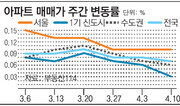 봄 이사철을 맞아 활발했던 부동산 수요가 줄면서 수도권 아파트시장이 숨고르기에 들어갔다. 한동안 아파트 값이 계속 오른 데에 따른 피로감 때문에 관망세가 이어지며 매매가격 상승세가 주춤한 모습이다. 12일 부동산114에 따르면 지난주 서울지역 아파트 매매가격의 상승률은 3주 연속 0.10%였다. 집주인들이 매매가격을 한껏 올려 부르고 있지만 매수인들과의 견해차가 커 거래가 쉽게 이뤄지지 않고 있다는 설명이다. 구별로는 노원구(0.26%)가 가장 많이 올랐고 동작구(0.18%), 양천구(0.17%), 성북구(0.16%), 강남·강동구(0.14%) 등의 순이었다. 서울의 재건축 아파트는 민간 택지지구 분양가상한제 폐지에 따른 기대감으로 0.15% 올랐다. 서울의 아파트 전세금은 0.24% 오르며 상승세를 이어갔지만 전주(0.25%)보다 오름폭이 줄었다. 3월 둘째 주(0.50%) 이후 4주 연속 오름폭이 줄고 있다. 신도시와 수도권은 각각 0.12%, 0.13% 올랐다.홍수영 기자 gaea@donga.com}