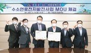 경북 의성군에 대규모의 수소연료전지발전소가 들어선다. 의성군과 ㈜청암에너지는 10일 군청 회의실에서 김주수 군수와 장진출 청암에너지 대표가 참석한 가운데 수소연료전지발전 사업을 위한 투자양해각서(MOU)를 체결했다. 이에 따라 청암에너지는 3000억 원을 투자해 2024년까지 의성읍 철파리 일원에 수소연료전지발전소와 송전선로, 온수공급관로를 건립할 예정이다. 이 사업이 완료되면 연간 39.6MW의 전기를 생산한다. 지역 내 1만5000여 가구가 사용할 수 있는 규모다. 장 대표는 “전기 발전 과정에서 수소와 산소가 결합해 따뜻한 물을 생산할 수 있다. 생산한 온수를 주변 지역에 공급하면 주민들이 난방비 절감 효과 등의 혜택을 얻을 것”이라고 말했다. 김 군수는 “정부의 그린뉴딜 정책을 선도하는 지방자치단체가 되도록 노력할 것”이라며 “생태 환경을 보호하면서 도시가 성장할 수 있는 지속가능한 발전에 앞장서겠다”고 말했다.명민준 기자 mmj86@donga.com}