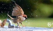 27일 광주 서구 상무지구의 한 공원 수돗가에서 때 이른 폭염을 피해 참새들이 수돗물에 뛰어들어 무더위를 식히고 있다. 광주=박영철 기자 skyblue@donga.com}