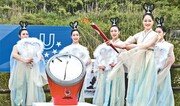 2일 광주 무등산국립공원 장불재에서 2015 광주 유니버시아드 성화 채화식이 열렸다. 광주예술고 학생들로 이루어진 칠선녀 가운데 주선녀가 불이 붙은 성화봉을 들고 있다. 내달 3일 개막해 14일까지 열리는 이번 대회에는 170개국에서 역대 최대인 1만3000여 명의 선수단이 참가할 예정이다. 광주=박영철 기자 skyblue@donga.com}
