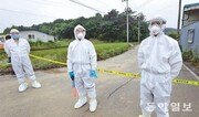 메르스 확진환자가 발생한 전남 보성의 한 마을에서 15일 방역 당국이 출입을 통제하고 소독 작업을 하고 있다. 박영철 기자 skyblue@donga.com}