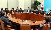 “와 자리를 바꿔 놨노. 내 자리가 연데(여긴데)….” 9일 오전 서울 영등포구 여의도 자유한국당 당사 6층에서 열린 ‘재입당 국회의원 간담회’. 홍준표 대표가 예정된 시간보다 15분 늦게 간담회장에 들어서며 말했다. 평소 자신이 앉는 자리에 바른정당을 탈당하고 복당한 김무성 의원이 앉아 있자 에둘러 핀잔을 준 것이다. 간담회는 복당파 의원들의 일종의 ‘입당 신고식’이었다. 앞서 간담회장에는 김 의원을 비롯해 강길부 김영우 김용태 이종구 황영철 정양석 홍철호 의원 등 복당파 8명이 오전 10시 반부터 둘러앉아 있었다. 하지만 홍 대표는 바로 옆 대표실에서 10분이 넘도록 나서질 않았다. 측근인 김대식 여의도연구원장은 복도에서 안절부절못했고, 복당파인 황 의원은 “다 끝난 게임인데 이렇게 기다리게 하느냐”고 혼잣말을 했다. 홍 대표가 복당파의 기선을 제압하려는 의도라는 해석이 나왔다. 바른정당을 탈당한 의원 8명이 8일 한국당에 복당했다. 바른정당 창당을 선언하며 새누리당(현 한국당)을 탈당한 지 318일 만의 회군(回軍)이다. 이로써 탄핵 정국에서 쪼개졌던 보수 야당은 내년 지방선거를 앞두고 부분적으로 재결합했다. 그러나 바른정당이 개혁 보수의 깃발을 내리지 않은 만큼 완전한 보수통합까지는 넘어야 할 관문이 많다. 홍 대표와 복당파의 첫 공동 일성은 “좌파 정권의 폭주를 저지하겠다”는 것이었다. 홍 대표는 간담회에서 “좌파 정부가 폭주기관차를 몰고 가는 데 대해 우리가 공동 전선을 펴서 저지를 할 수밖에 없다”고 말했다. 김무성 의원도 “생각 차이나 과거 허물을 따지기에는 우리나라가 처한 상황이 너무 위중하다”고 화답했다. 이어 “나라를 걱정하는 많은 국민들이 ‘보수는 무조건 하나로 뭉쳐 문재인 좌파 정권의 폭주를 막아 달라’고 요청했고 이를 겸허하게 받아들여 보수 대통합에 제일 먼저 참여하기로 했다”고 말했다. 당초 김 의원은 간담회에 참석할지를 고민했다. 홍 대표가 주재하는 입당식에 참석하는 게 ‘보수 적통’ 경쟁에서 패배했음을 널리 알리는 모양새가 될 수 있다며 주변에서 만류했기 때문이다. 김 의원과 홍 대표는 각각 ‘김영삼(YS) 직계’와 ‘YS 키즈’로 1996년 15대 총선을 통해 국회에 입성한 동기다. 하지만 김 의원은 “나 혼자 빠지는 모습이 또 다른 억측을 만들 수 있다. (간담회에) 참석해 비판을 감수할 수밖에 없다”고 말한 것으로 알려졌다. 자신을 향한 비난은 감수할 테니 보수 재결합의 효과를 제대로 내야 한다는 마음이었다는 것이다. 홍 대표는 비공개 간담회에서 “앞으로 보수 대통합은 지방선거 때 국민의 심판으로 이뤄내겠다”고 말했다. 보수 정당의 적통은 한국당으로 자리매김했다고 보고, 바른정당과의 당 대 당 통합에는 응하지 않겠다는 얘기다. 그 대신 홍 대표는 옛 친이(친이명박)계 좌장이었던 이재오 전 의원이 이끄는 늘푸른한국당과 다음 주 통합하기로 가닥을 잡았다. 김 의원 등의 복당에 대해 친박(친박근혜)계와 비박(비박근혜) 진영은 장외 설전을 벌였다. 친박계인 김진태 의원은 “침을 뱉고 떠난 자들의 무임승차는 있을 수 없다”고 비판했다. 친박 의원 15명은 복당에 반발하며 의원총회 소집 요청서를 냈다. 반면 정진석 의원은 “참호 속의 동료에게 총구를 겨누지 말라”고 맞섰다. 홍 대표도 “시대의 흐름도 모르고 당랑거철(螳螂拒轍·사마귀가 수레를 막는다는 뜻) 같은 행동으로 당과 나라를 어지럽히는 철부지는 없어졌으면 한다”고 친박계를 겨냥했다.홍수영 gaea@donga.com·박훈상 기자}