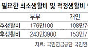 노후 적정 생활비는 얼마일까. 50대 이상 한국인은 1인당 매달 153만 원 이상은 있어야 한다고 생각하는 것으로 나타났다. 최저 생활을 하더라도 월 108만 원 이상은 필요하다고 봤다. 국민연금 월평균 수령액은 1인당 약 37만 원에 불과해 노후 생활비와의 격차가 상당히 큰 상황이다. 25일 국민연금공단 국민연금연구원에 따르면 지난해 50세 이상 4449가구를 대상으로 조사한 결과 ‘적정 노후생활비’는 부부의 경우 월 243만3900원, 개인은 153만7100원이라고 생각하는 것으로 나타났다. 적정생활비란 특별한 질병 없이 표준적인 생활을 할 수 있는 비용을 의미한다. 거주 지역별 적정생활비는 부부 합산 △서울 284만4500원 △광역시 236만1100원 △도(道) 지역 232만8100원으로 조사됐다. 개인 기준 적정생활비는 △서울 177만1600원 △광역시 139만3900원 △도 지역 152만3300원이었다. 그렇다면 50대 이상 한국인은 어떻게 노후생활비를 마련하고 있을까. 자신이 이미 노후 시기에 진입했다고 인식하는 이들은 정부 보조금과 자식이나 친척에게서 받는 용돈으로 생활비를 충당하고 있다고 답했다. 아직 노후 시기에 진입하지 않았다고 인식하는 이들 중에선 3명 중 한 명(37.1%)만이 노후 준비를 하고 있다고 응답했다. 이들은 노후 준비 방법 1순위로 국민연금(57.5%·중복 응답)을 꼽았다. 2순위로는 예금·저금·저축성 보험(45.5%)이라고 했다. 노후 준비를 하고 있지 않다고 응답한 이들 중 절반이 넘는 54.7%는 ‘준비할 능력이 없기 때문’이라고 답했다. 노인 빈곤율이 경제협력개발기구(OECD) 최고 수준인 상황에서 노후 준비가 안 된 노인이 급속히 늘어날 가능성이 큰 셈이다. 50대 이상이 인식하는 노후 시작 시기는 68.5세로 법정 정년 연령 60세와 큰 차이가 났다. 노후 시작 시기를 두고는 56.3%가 ‘기력이 떨어지기 시작한 시기’라고 응답했다. 이어 24.3%는 ‘근로활동을 중단하는 시기’라고 말했다.김하경 기자 whatsup@donga.com}