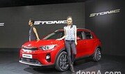 기아자동차의 새로운 소형 SUV 스토닉이 사전계약대수 1500대를 돌파했다.기아차는 13일 서울 그랜드 워커힐 호텔 비스타홀에서 스토닉 신차발표회를 열고 본격적인 판매에 들어갔다. 회사에 따르면 스토닉은 지난달 사전계약 접수를 개시했으며 영업일 12일 간 약 1500대가 계약됐다. 일 평균 125대 수준으로 20대와 30대 소비자 비중이 전체의 57%를 차지했다. 또한 월 판매 목표는 1500대 수준이라고 전했다.이 모델은 쌍용차 티볼리보다 조금 작은 크기의 소형 SUV로 먼저 출시된 현대차 코나와 국내외 소형 SUV 시장을 공략하는 전략 차종이다. 스토닉은 코나와 동급으로 분류되지만 실제 크기는 조금씩 작다. 또한 추구하는 방향성도 약간 차이가 있다. 코나는 사양고급화 등을 통해 30대와 40대 소비자를 주요 고객으로 설정했지만 스토닉은 20~30대 젊은 소비자들에 초점을 맞춰 개발됐다.다소 심심할 수 있지만 깔끔한 외관 디자인과 화려한 컬러로 젊은 감각을 어필했다. 여기에 엔트리 모델의 판매 가격을 경쟁 모델로 꼽은 쌍용차 티볼리 디젤보다 낮게 책정해 경쟁력도 확보했다. 디럭스와 트렌디, 프레스티지 등 총 3가지 트림으로 판매되며 기본 가격은 1895만 원부터 2265만 원이다. 가장 상위 트림에 선택사양을 모두 더한 풀옵션 모델의 가격은 2395만 원까지 올라간다. 파워트레인은 1.6리터 디젤 엔진과 7단 듀얼클러치 변속기가 조합된 단일 버전으로 판매된다. 최고출력 110마력, 최대토크 30.6kg.m의 성능을 발휘한다. 코나에 적용된 1.6리터 디젤 엔진(136마력)보다 낮은 세팅이며 쌍용차 티볼리(113마력)와는 비슷한 수준이다.실내는 신형 프라이드와 비슷한 구성이다. 수평형 레이아웃이 적용됐고 가니쉬에 컬러 포인트를 더해 젊은 감각을 살렸다. 여기에 돌출된 센터디스플레이와 차세대 공조 컨트롤 장치, D컷 스티어링 휠, 스포티한 디자인의 에어벤트, 고급형 클러스터, 알로이 페달 등이 적용됐다.안전사양으로는 차량자세제어시스템플러스가 전 모델에 기본 탑재됐고 첨단 주행보조 장치인 ‘드라이브 와이즈’를 전 트림에 옵션으로 추가할 수 있도록 했다.기아차 관계자는 “스토닉은 2030세대를 타깃으로 경제성과 디자인, 안전성을 두루 겸비한 만능 소형 SUV”라며 “소형 SUV 시장에 새로운 바람을 불러 올 것”이라고 말했다.동아닷컴 김민범 기자 mbkim@donga.com}