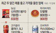 빵, 맥주, 콜라에 이어 라면 가격도 오른다. 조류인플루엔자(AI) 영향으로 달걀 값까지 지속적으로 오르고 있어 장바구니 물가에 비상이 걸렸다. 국내 1위 라면 생산업체인 농심은 이달 20일부터 라면 권장소비자가격을 평균 5.5% 인상한다고 16일 밝혔다. 전체 28개 제품 가운데 18개가 인상 대상이다. 주요 제품으로는 신라면이 780원에서 830원으로, 짜파게티가 900원에서 950원으로 각각 오른다. 너구리와 육개장사발면도 50원씩 올라 각각 900원과 850원이 된다. 짜왕, 맛짬뽕 등 프리미엄 라면은 가격을 동결했다. 농심은 “물류비와 인건비 등이 올라 5년 1개월 만에 가격을 상향 조정했다”고 설명했다. 이달 초에는 빵값도 올랐다. 파리바게뜨는 2년 10개월 만에 193개 품목의 가격을 평균 6.6% 인상했다. 단팥빵이 800원에서 900원(12.5%)으로 올랐다. 롤 케이크는 1만 원에서 1만1000원(10%)이 됐다. 지난달에는 코카콜라가 콜라와 환타 가격을 평균 5% 인상했다. 오비맥주도 카스, 프리미어OB, 카프리 등 주요 제품 출고 가격을 평균 6% 올렸다. 유통업계 관계자는 “시장 점유율 1위 업체가 가격을 올리면 2, 3위 업체도 뒤따라가는 국내 식음료 업계 관행을 감안할 때 앞으로 가격 인상이 이어질 것”이라고 내다봤다. 일각에서는 혼란한 정국을 틈타 기업들이 기습적으로 제품 가격을 올리는 것이라는 비판도 나온다. 김연화 한국소비자단체협의회 물가감시위원장은 “가격을 올린 업체에서 뚜렷한 인상 근거를 제시하지 않을 경우 소비자단체 차원에서 강력히 대응해 나갈 것”이라고 말했다. 최고야 기자 best@donga.com}