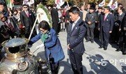 “4·19 이후 풍전등화 같은 조국을 구한 아버지(박정희 전 대통령)는 혁명가이자 봉건질서를 타파한 개혁가였습니다. 하면 된다는 신념 하나로 안보와 경제 두 마리 토끼를 잡기 위해 헌신했습니다.” 박근령 전 육영재단 이사장은 14일 오전 11시 서울 동작구 국립서울현충원 박정희 전 대통령 묘소 앞에서 열린 박 전 대통령 탄생 100주년 기념행사에서 이렇게 자신의 아버지를 말했다. 그는 “대만 장개석(장제스)은 39년, 세종대왕은 32년간 집권하며 경제발전을 이뤄내고 훌륭한 업적을 남겼다”고도 했다. 이날 행사에는 박 전 이사장을 비롯해 조원진 대한애국당 대표, 박준홍 자유민주실천연합 총재, 신동욱 공화당 총재 등과 박사모(박근혜를 사랑하는 모임) 회원 800여 명(경찰 추산)이 참석했다. 행사에 오지 않은 아들 박지만 EG 회장은 이날 오전 9시경 묘소를 찾아 10분간 참배한 것으로 알려졌다. 맏딸 박근혜 전 대통령은 구치소에서 이날을 맞았다. 조 대표는 “박 전 대통령이 이룩한 한강의 기적을 빼놓고는 대한민국을 논할 수 없다. 자유민주주의와 시장경제를 파괴하는 문재인식 좌파독재 정책을 몰아내야 한다”고 말했다. 이어 “많은 국민이 박근혜 전 대통령에게 죄가 없다는 걸 안다. 살인적인 구속 연장, 악질적 인신 감금 사실을 전 세계 많은 사람이 알고 있다”고 주장했다. 참석자들은 오후 2시 서울 종로구 대학로 마로니에광장에서 ‘박정희 대통령 탄신 100주년 기념 태극기 집회’를 열고 ‘박근혜 무죄 석방’을 주장했다. 이날 경북 구미시 박정희 전 대통령 생가에서도 ‘탄생 100돌 숭모제’와 역사자료관 기공식이 열렸다. 행사에는 김관용 경북도지사, 남유진 구미시장, 김문수 전 경기도지사, 자유한국당 전·현직 의원과 전국에서 온 시민 1000여 명이 자리했다. 남 시장은 기념사에서 “얼마 전 한국을 방문한 미국 하버드대 윌리엄 오버홀트 박사는 ‘한국 보수진영은 박정희 업적만큼 김대중 업적이 크다는 걸 인정하고, 진보진영 또한 김대중의 민주화가 박정희 성과 덕을 봤다는 점을 인정해야 한다’고 말했다”며 “이를 깊이 새겨 산업화 세력과 민주화 세력 간 화해를 이뤄내야 한다”고 말했다. 행사가 끝난 후 구미참여연대 등 6개 시민사회단체 회원 20여 명이 ‘박정희 역사자료관 건립 반대’ 기자회견을 열었다. 이들은 숭모제 참석자들과 말싸움을 벌이기도 했다. 참석자들은 이들을 향해 “북괴로 꺼져라” “빨갱이들이 행패 부린다”라며 험한 말을 했다. 경찰은 병력 400여 명을 동원해 이들 사이를 가로막아 물리적 충돌은 일어나지 않았다. 행사 후 참석자 100여 명은 생가 주변 도로를 행진하며 “문재인 타도” “박근혜 석방”을 외쳤다.이지훈 easyhoon@donga.com / 구미=이권효 기자}