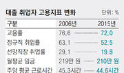 최근 10년간 4년제 대졸자의 정규직 취업 비율이 10%포인트나 감소한 것으로 나타났다. 대기업 등 이른바 ‘선망 직장’ 취업률도 감소하고 있었다. 여기에 월평균 임금까지 오히려 줄어들면서 이직을 준비하는 비율도 두 배로 늘었다. 한국직업능력개발원이 최근 내놓은 ‘지난 10년간 4년제 대졸자 노동시장의 변화’ 보고서에 따르면 4년제 대학을 졸업한 청년층의 정규직 취업률은 2006년 63.1%에서 2015년 52.5%로 10.6%포인트 감소했다. 4년제 대졸자 전체 고용률도 76.6%에서 72.0%로 감소했다. 특히 300명 이상 대기업과 외국계 회사, 공공기관과 연구기관 등 이른바 ‘선망 직장’ 정규직 취업자 비율도 같은 기간 29.1%에서 19.8%로 9.3%포인트나 줄어들었다. 이번 조사는 한국고용정보원이 2005년과 2014년 졸업자 2만5987명의 취업 상황을 조사한 ‘대졸자 직업이동 경로조사’를 직능원이 재차 분석한 결과다. 어렵게 직장을 구한 대졸자의 근로조건도 10년 동안 오히려 악화된 것으로 나타났다. 2006년 219만 원이던 대졸자 월평균 임금이 2015년에는 210만 원으로 낮아졌다. 같은 기간 주당 평균 근로시간은 45.3시간에서 44.6시간으로 0.7시간(42분) 줄어드는 데 그쳤다. 근로조건이 악화되면서 직장 만족 비율은 같은 기간 58.8%에서 56.4%로 감소했다. 이에 따라 취업자 중 이직을 준비하는 비율도 같은 기간 두 배 이상으로(8.4%→17.7%) 증가했다. 이직 준비 비율은 공학계열(8.0%→14.8%)보다는 인문계열(8.9%→20.5%)과 사회계열(9.0%→19.4%)에서 상승폭이 컸다. 4년제 대학 인문사회계열을 졸업한 대졸 취업자 5명 중 1명 정도는 일자리를 구한 후에도 이직을 준비하고 있는 셈이다. 직능원은 최근 10년간 이뤄진 경제 성장이 정규직 일자리와 선망 직장 일자리 투자로 이어지지 않은 결과라고 분석했다. 정규직과 선망 직장 취업률이 줄면서 청년 전체의 고용률 하락으로 이어지고 있다는 뜻이다. 양정승 직능원 부연구위원은 “특히 인문사회, 예체능계열의 경우 전공과 일자리가 일치하지 않는 비율이 증가하고 있다”며 “산업 수요에 맞는 전공교육이 이뤄질 수 있도록 대학교육을 개선해야 한다”고 말했다.유성열 기자 ryu@donga.com}
