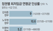 내년도 최저임금(올해 시급 6470원)이 사상 처음으로 시급 7000원대에 진입할 것으로 확실시된다. 전년 대비 인상률도 노무현 정부 시절인 2007년(2006년 결정) 이후 11년 만에 두 자릿수 퍼센트로 결정될 것으로 전망된다. 12일 정부세종청사 최저임금위원회에서 열린 10차 전원회의에서 노동계는 시급 9570원(47.9% 인상)을, 경영계는 6670원(3.1% 인상)을 수정안으로 제시했다. 각각 시급 1만 원과 6625원을 제시했던 1차 안에서 노동계는 430원을 깎고, 경영계는 45원을 올린 것이다. 다만 주휴수당(근로기준법에 따라 1주간 소정 근로를 개근한 근로자에게 부여되는 유급휴일에 대한 수당)을 포함한 월급 기준으로 노동계는 200만 원, 경영계는 139만4000원을 제시했다. 노동계가 시급 1만 원은 포기했지만 월급 200만 원을 마지노선으로 내세운 셈이다. 그럼에도 불구하고 어수봉 위원장은 격차가 너무 크다며 노사 양측에 2차 수정안을 내라고 요구했지만 노동계에서 난색을 표해 이날 회의는 그대로 끝났다. 당초 업종별 차등화 관련 실태조사를 요구하며 조건부 불참을 선언했던 중소기업·소상공인 대표 4명은 최저임금위가 요구를 수용하자 이날 회의에는 참석했다. 노사가 수정안을 제시했지만 양측의 금액 차가 2900원으로 워낙 커 내년도 최저임금은 노사 합의로 결정될 가능성이 사실상 사라졌다. 그러나 노사 합의로 최저임금을 정하는 건 애초부터 불가능할 것이라는 관측이 많았던 만큼 예정된 수순이었다는 게 중론이다. 이에 따라 공익위원들은 15일 11차 전원회의에서 2차 수정안 제출을 다시 한 번 요구하고, 노사가 이에 응하지 않거나 격차가 좁혀지지 않으면 최고-최저 인상률(촉진구간)을 제시한 뒤 그 안에서 합의를 유도할 계획이다. 통상적으로 공익위원들이 촉진구간을 제시하면 노사는 이 범위 내에서 협상을 벌이게 된다. 하지만 이렇게 해도 합의가 이뤄지지 않으면 공익위원들은 촉진구간 내에서 중재인상률을 제시한 뒤 위원 전원(27명)이 참여하는 표결로 처리할 방침이다. 이에 따라 적어도 협상 시한인 16일 새벽에는 내년도 최저임금이 확정될 수 있을 것으로 보인다. 정부 안팎에서는 11%(7181원)∼15%(7440원)에서 결정될 가능성이 높다는 분석이 나오고 있다. 문재인 대통령은 2020년까지 시급을 1만 원으로 올리겠다고 공약했는데 이를 달성하려면 올해 적어도 7480원(매년 최소 15.6% 인상)까지 올려야 한다. 하지만 이 인상 폭은 너무 급격한 것이어서 이보다 인상률은 작지만 두 자릿수 퍼센트 인상과 7000원대 진입이라는 ‘명분’을 확보하는 선에서 정리되지 않겠느냐는 전망이 꾸준히 나오고 있다.유성열 기자 ryu@donga.com}