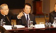 “한국은 선교사가 복음을 전한 게 아니라 학자들이 연구하다 복음을 받아온 역동성을 지녔습니다. 교황이 분단된 국가에 화해와 평화의 메시지를 전하시려 한 이유도 있을 거라 생각합니다.” 염수정 추기경은 12일 서울 중구 한국프레스센터에서 열린 한국신문방송편집인협회와 한국언론진흥재단이 주최한 언론인과의 담화회에서 프란치스코 교황이 8월 한국을 방문하는 의미에 대해 이렇게 말했다. 한국 가톨릭 사회의 역동적인 모습이 아시아는 물론이고 세계의 모범이 되도록 힘을 실어주기 위한 것으로 풀이했다. 염 추기경은 빈부 격차, 가정 해체, 자살률 등 한국 사회의 여러 문제에 대해 우려를 나타냈다. “갈등과 미움을 해소하기 위해서는 형제애를 가져야 합니다. 형제애는 개인의 손익과 공동선 사이에 균형을 잡아줍니다. 정치 공동체는 책임감을 갖고 이를 증진시켜야 합니다.” 이어 염 추기경은 “시민들은 공권력이 자신들의 자유를 존중하고 자신들을 대표한다는 것을 자각해야 한다”고 덧붙였다. 추기경은 사회 문제를 해결하기 위해 교회도 행동에 나서야 한다며 “서울대교구는 각 성당에서 지출하는 돈의 10분의 1을 어려운 사람을 위해 쓰라고 하는데 실제로 다 못 쓰고 있다”며 실천을 촉구했다.손효림 기자 aryssong@donga.com}